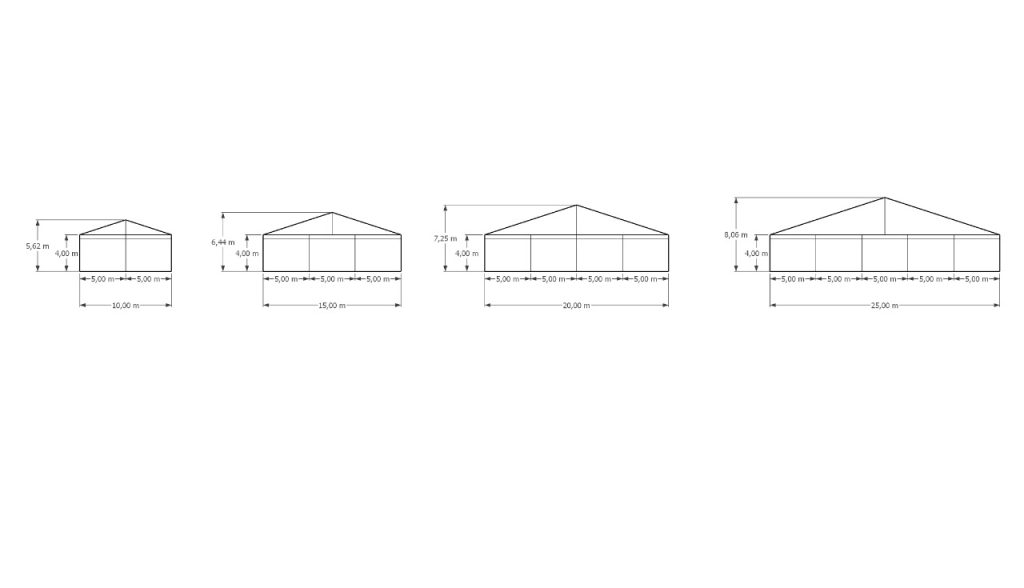 • Lebar atau bentangan tenda terdiri dari 10M, 15M, 20M, 25M,dan 30M. dan Panjang tidak terbatas, sesuai kebutuhan dengan penambahan modul perlima meter.